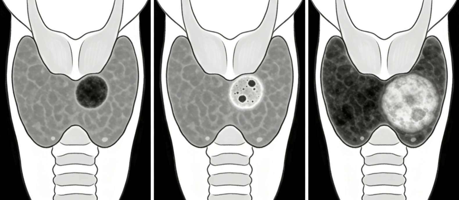 这类结节通常形态规则、边界清晰,内部多为囊性或实性均匀回声,没有微小钙化,也没有异常血流信号。只要结节直径不大、没有压迫症状,甲状腺功能正常,就不需要手术,定期观察即可。